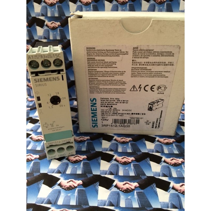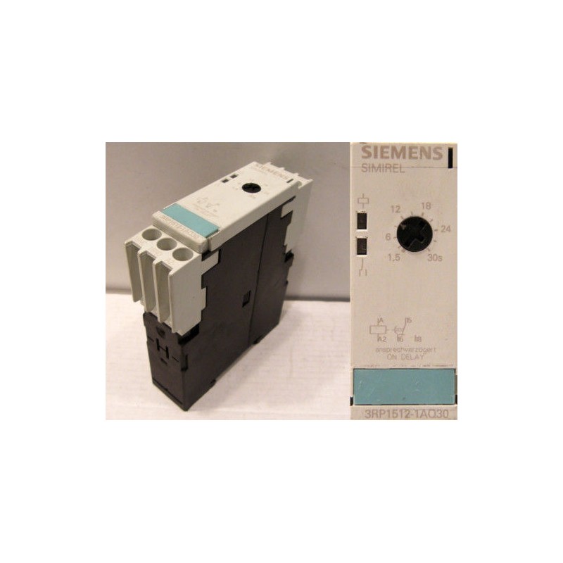 Siemens 3RP1512-1AQ30 relé temporizador electrónico regulable de 1.5s a 30 segundos y opera en 24 AC DC 100-127 V AC – Se monta en carril DIN estándar de 35 mm, tiene terminales de tornillo y el contacto 1 de cambio